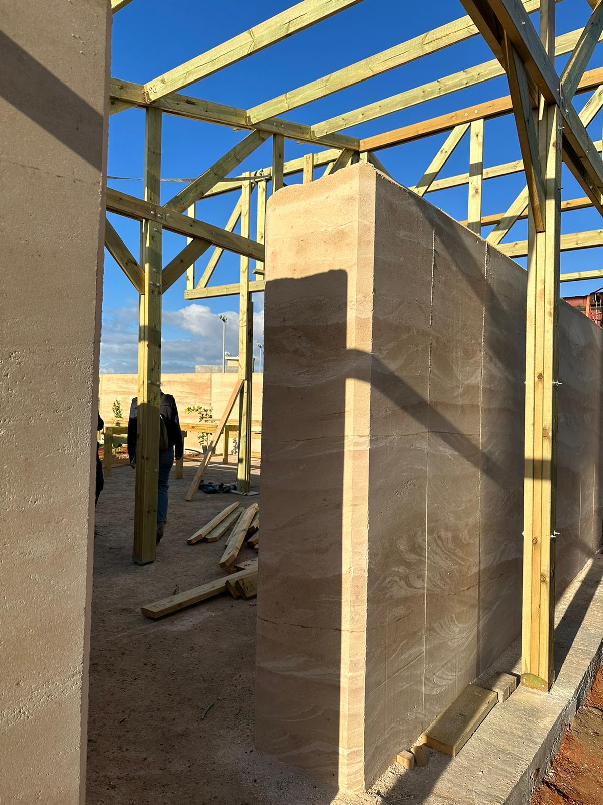 تم بناء الهيكل مع سقف مصنوع من الخشب، واستخدام حاويات كمكتب ومتجر. جميع الجدران بُنيت من الطين المدكوك لعزل المساحة بصريًا عن الشارع والمدرسة المجاورة، وهو اعتبار مهم للنساء.